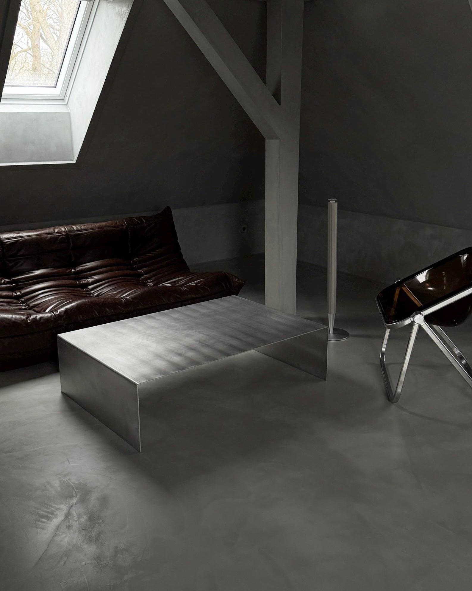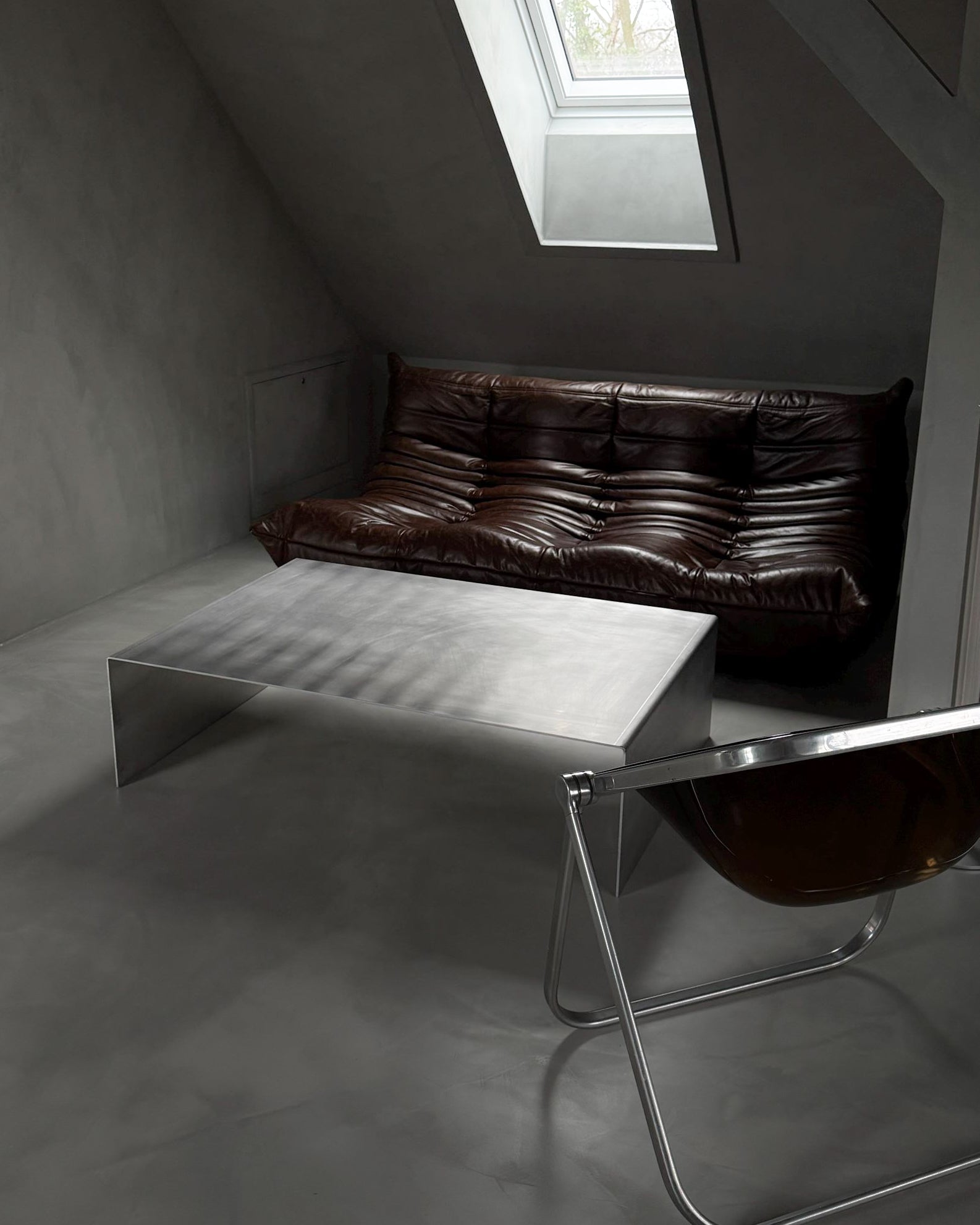 Der Couchtisch wurde aus massivem 5mm Aluminium gefertigt, um die klaren Outlines der minimlaitsichen Designsprache zu unterstreichen und hohe Stabilität ohne "Wackeln" zu garantieren.