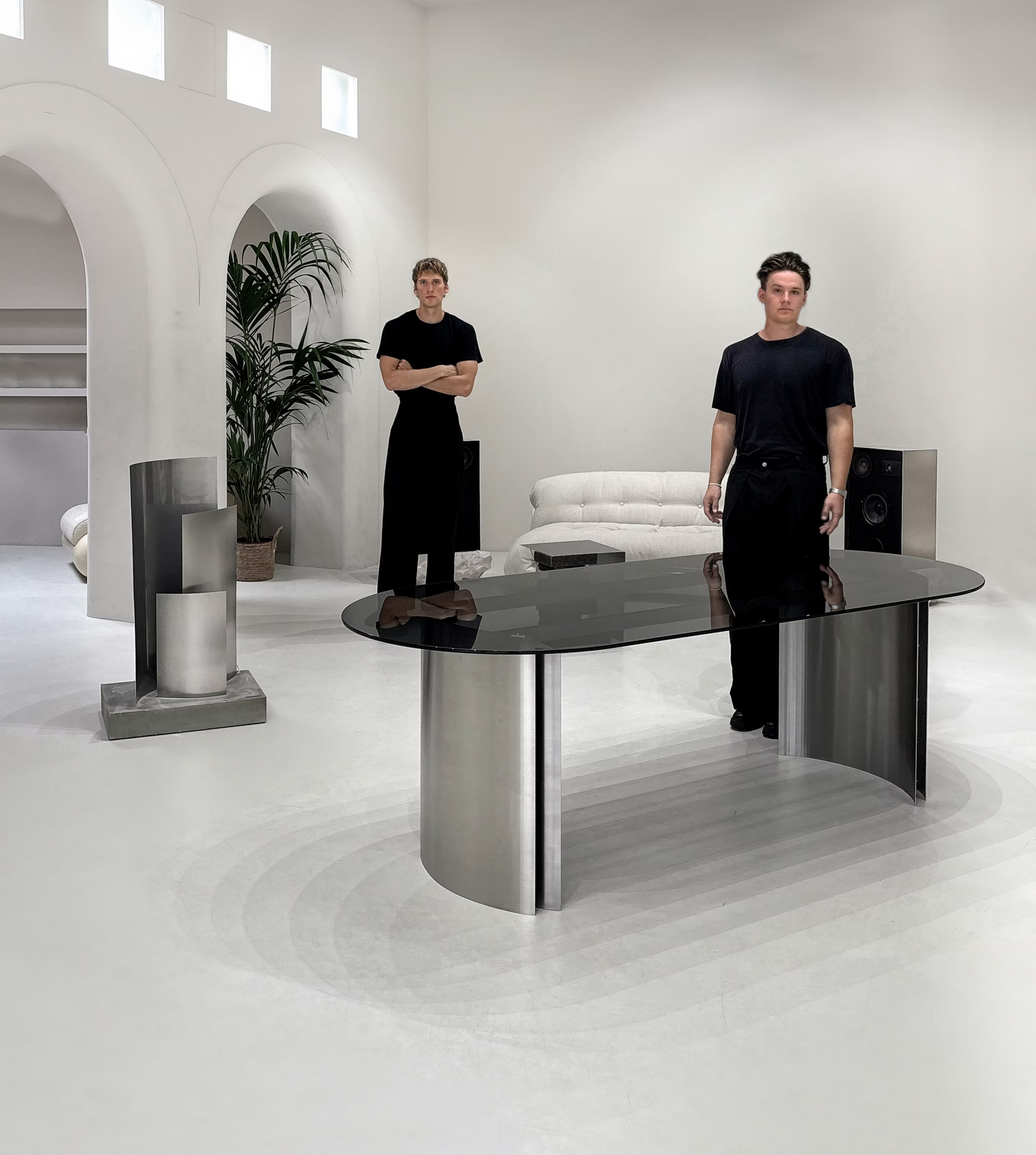 Each table is crafted in Germany from solid 3mm aluminum panels — sanded to a soft, even sheen that reduces fingerprints, stains, and scratches. The result is a timeless piece that balances industrial precision with artisanal sensitivity, designed to age beautifully and develop a subtle patina over time.